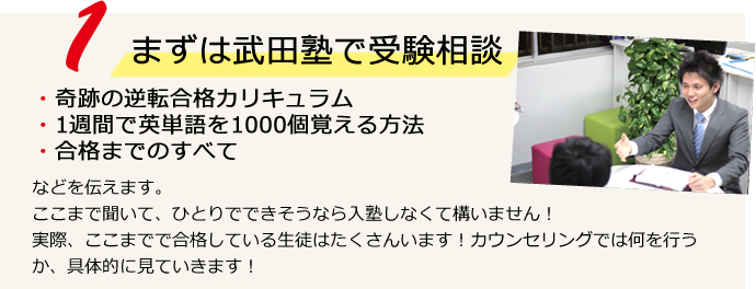 「今から受験勉強を始めて高3の春にA判定を取りたい!」という人は無料受験相談にお越しください。